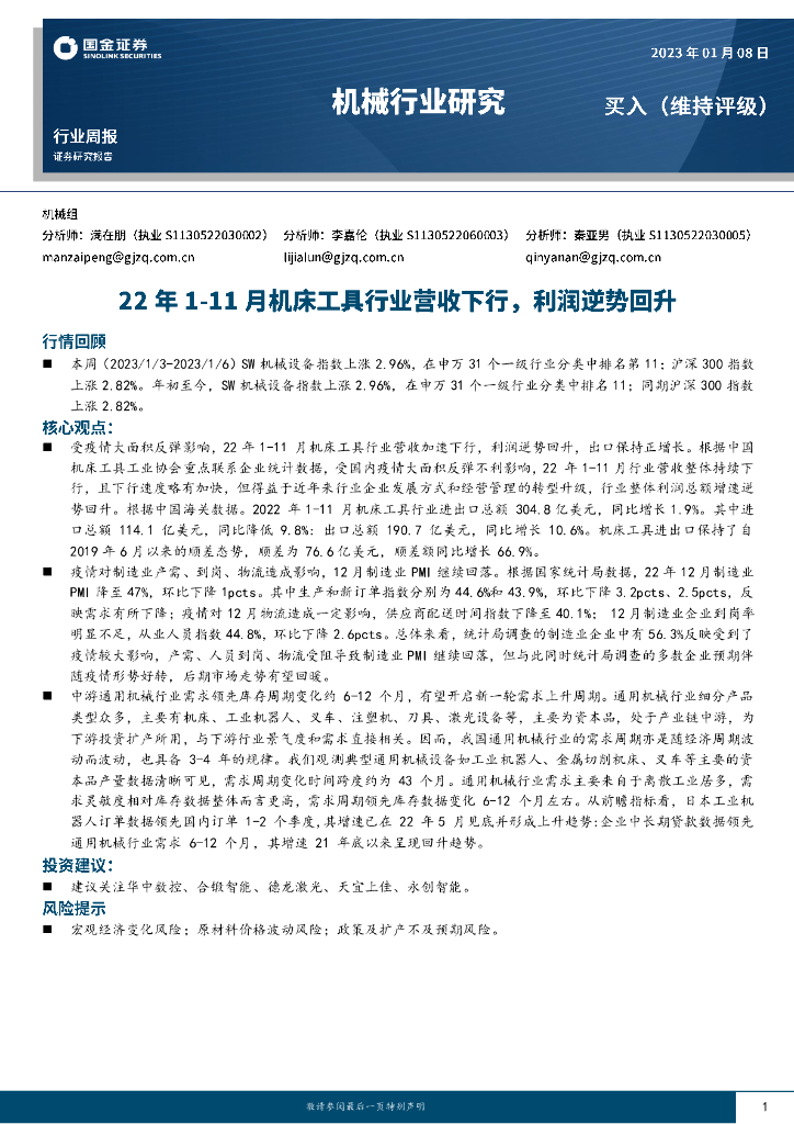 国金证券:机械行业研究:22年1-11月机床工具行业营收下行,利润逆势回升.pdf