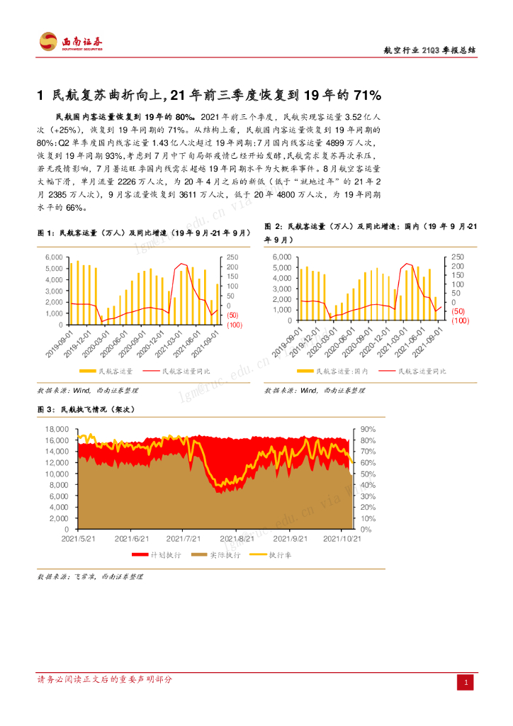 西南证券:航空行业21Q3季报总结:航空复苏曲折向上,春秋为唯一盈利航企.pdf
