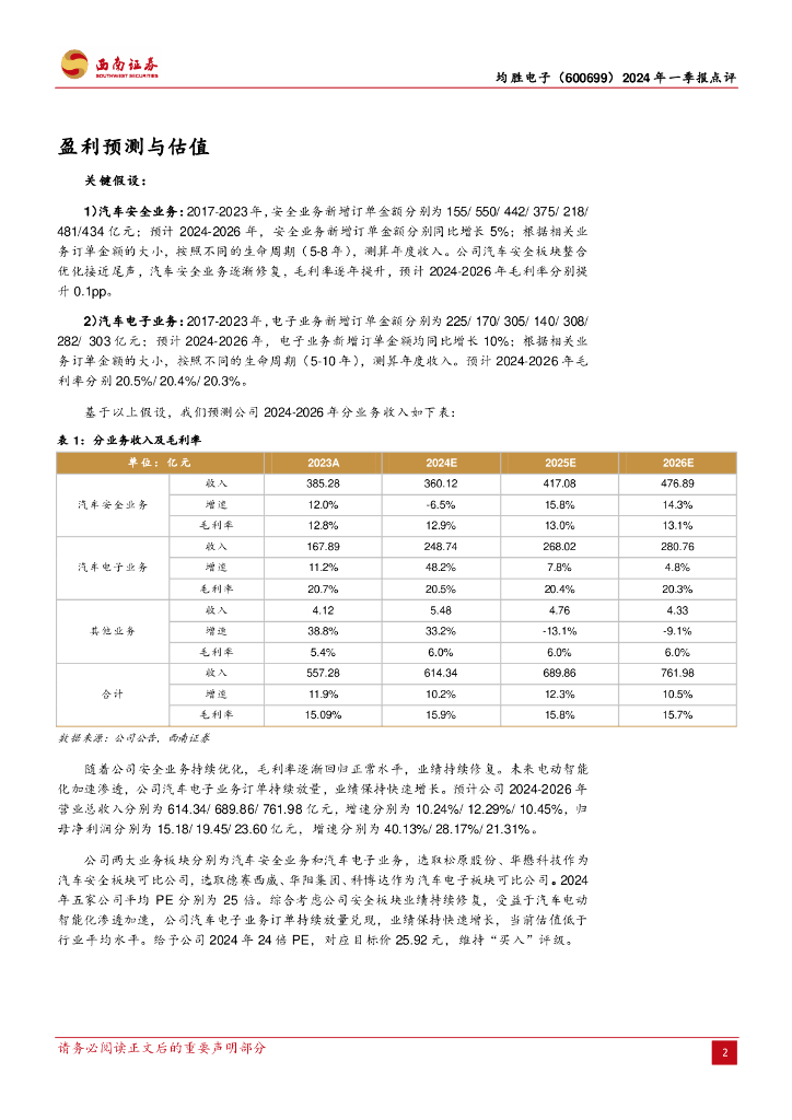 西南证券:均胜电子(600699)-2024年一季报点评:整体净利率持续提升,新订单同比大幅增长.pdf