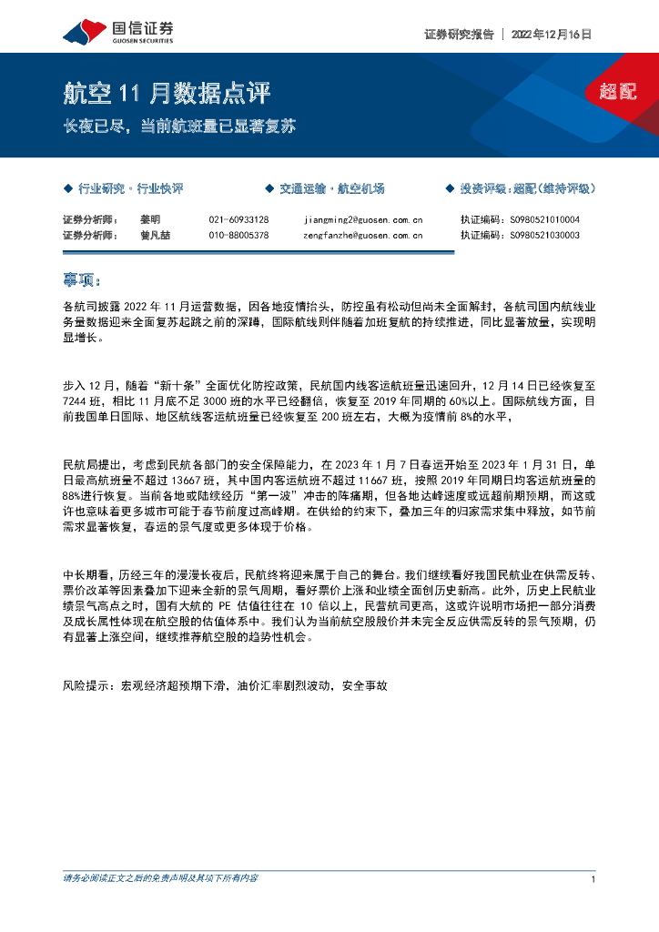 国信证券:航空11月数据点评:长夜已尽,当前航班量已显著复苏.pdf