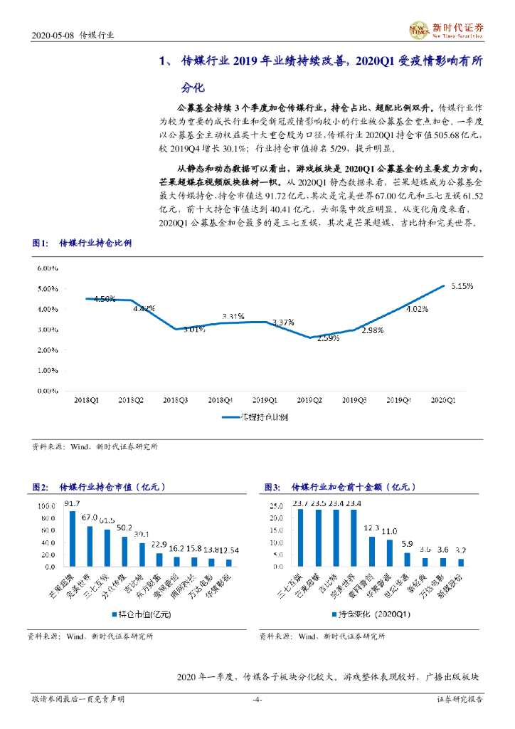 新时代证券:传媒行业2019年年报和2020年一季度报业绩总结:疫情影响不改5G应用上行周期,配置仍以在线游戏和视频为主线.pdf