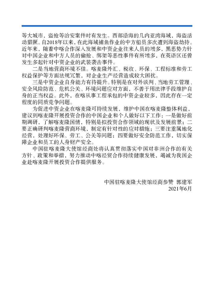 商务部:对外投资合作国别(地区)指南:喀麦隆(2021年版).pdf