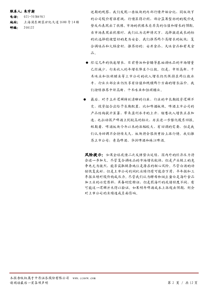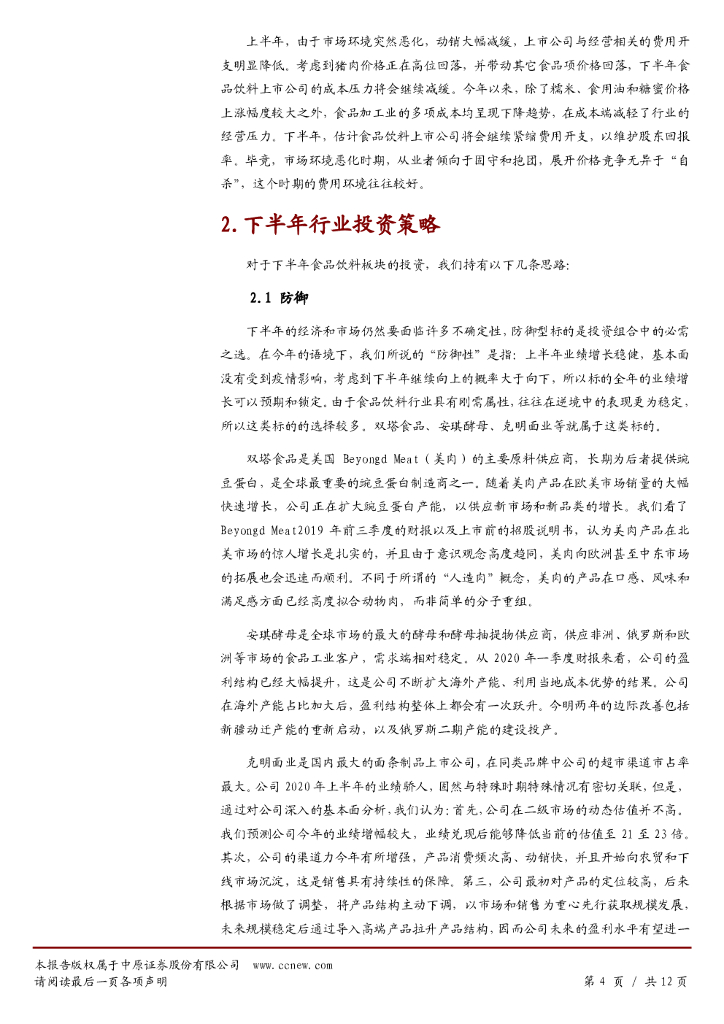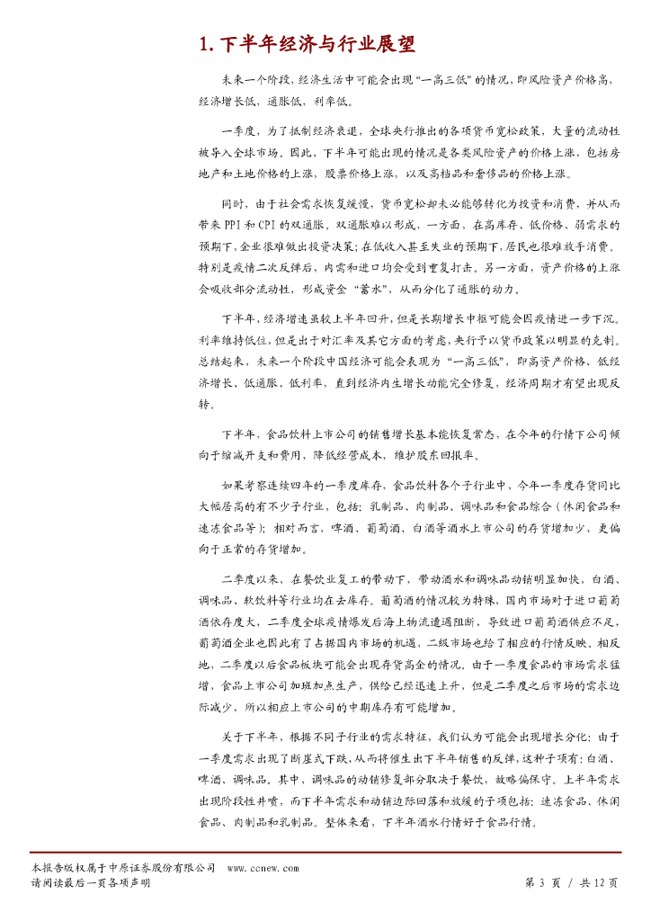 中原证券:食品饮料行业2020年下半年投资策略:受益边际趋势改变,酒水行情好于食品.pdf