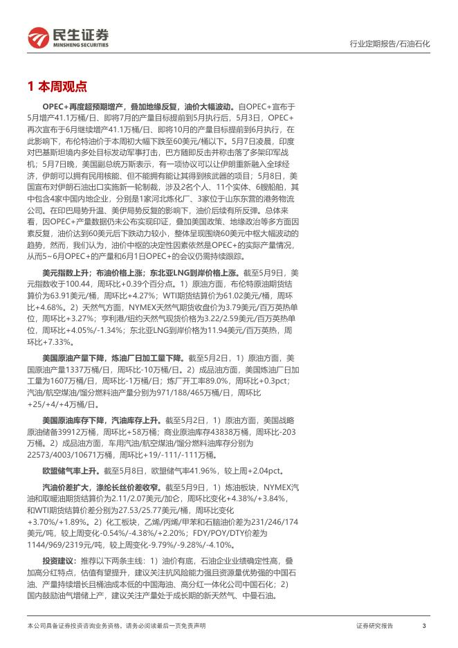 民生证券:石化周报:OPEC+再度超预期增产,叠加地缘反复,油价大幅波动.pdf