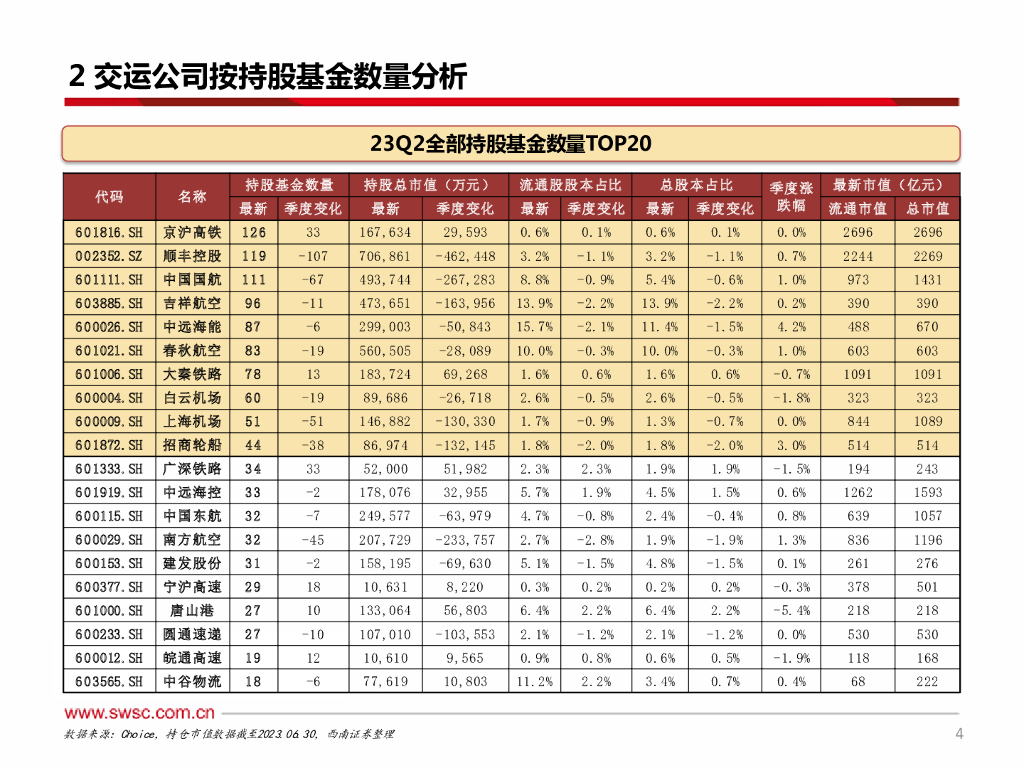 西南证券:交运行业2023Q2持仓分析:配比持续回落,铁运助力内外双循环.pdf
