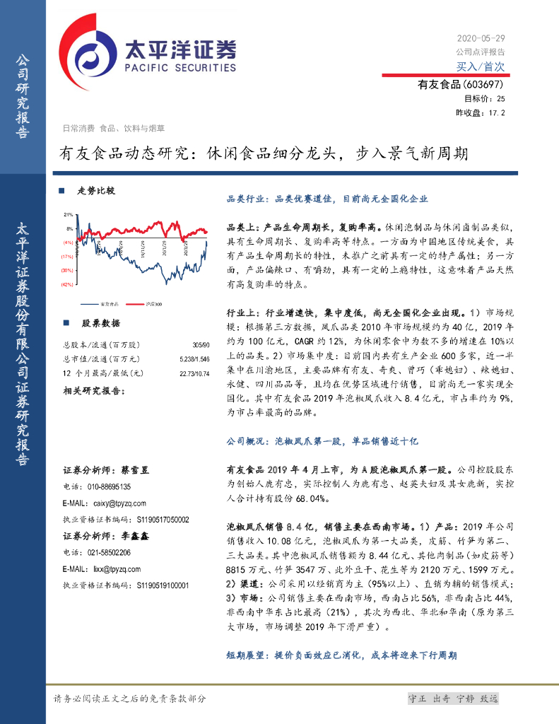 太平洋证券:有友食品动态研究:休闲食品细分龙头,步入景气新周期.pdf