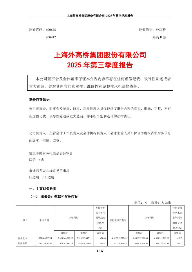 600648-外高桥:2025年第三季度报告.pdf