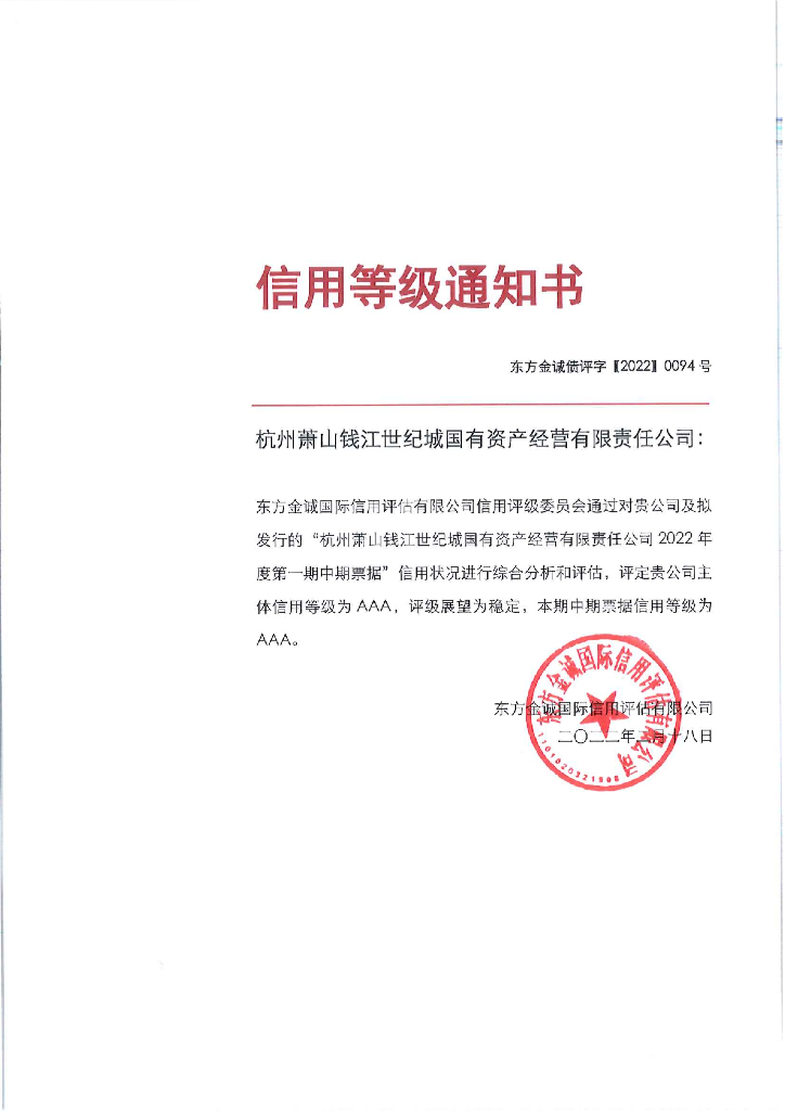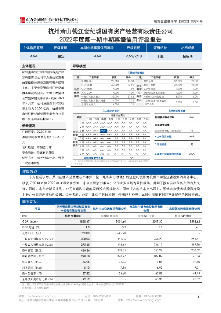 东方金诚:杭州萧山钱江世纪城国有资产经营有限责任公司主体评级报告.pdf