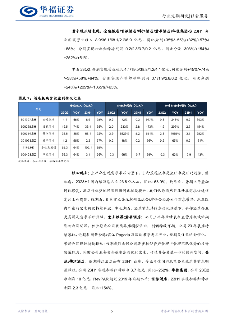华福证券:社服行业2023年半年报小结:酒店旅游受益出行复苏,高景气有望持续.pdf