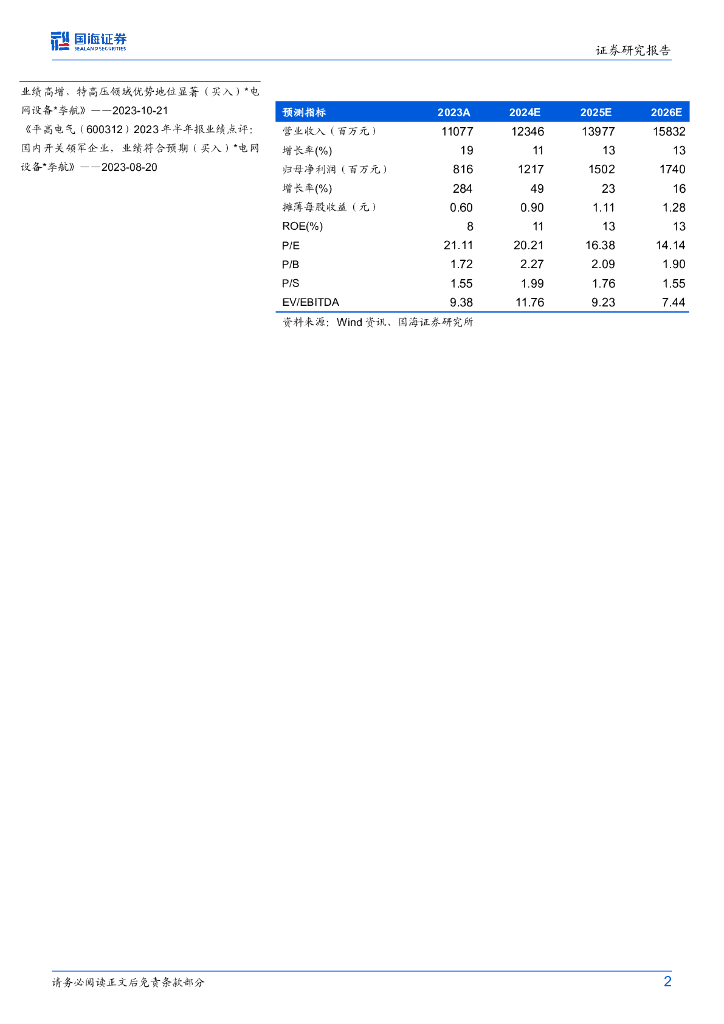 国海证券:平高电气(600312)-2024年三季报点评:公司业绩保持快速增长,有望受益国内电网建设高景气.pdf