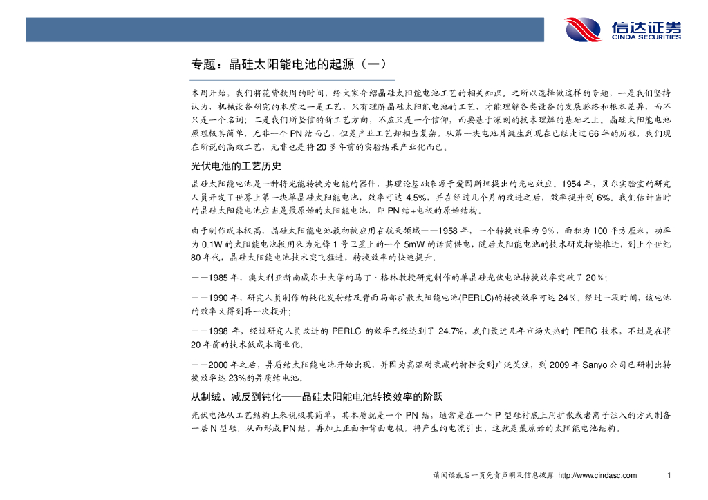 信达证券:机械设备行业周报:晶硅太阳能电池的起源(一).pdf