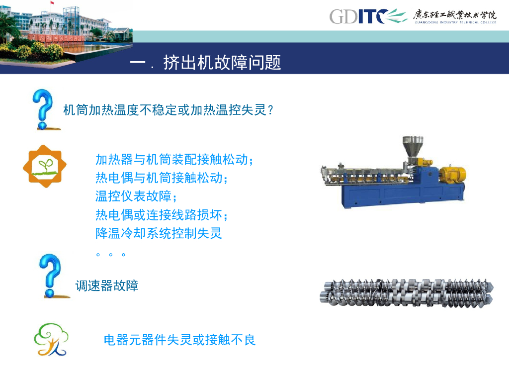 《塑料挤出成型》演示文稿-项目1 螺杆挤出造粒 单元10 双螺杆双螺杆挤出机造粒过程故障排除.pdf