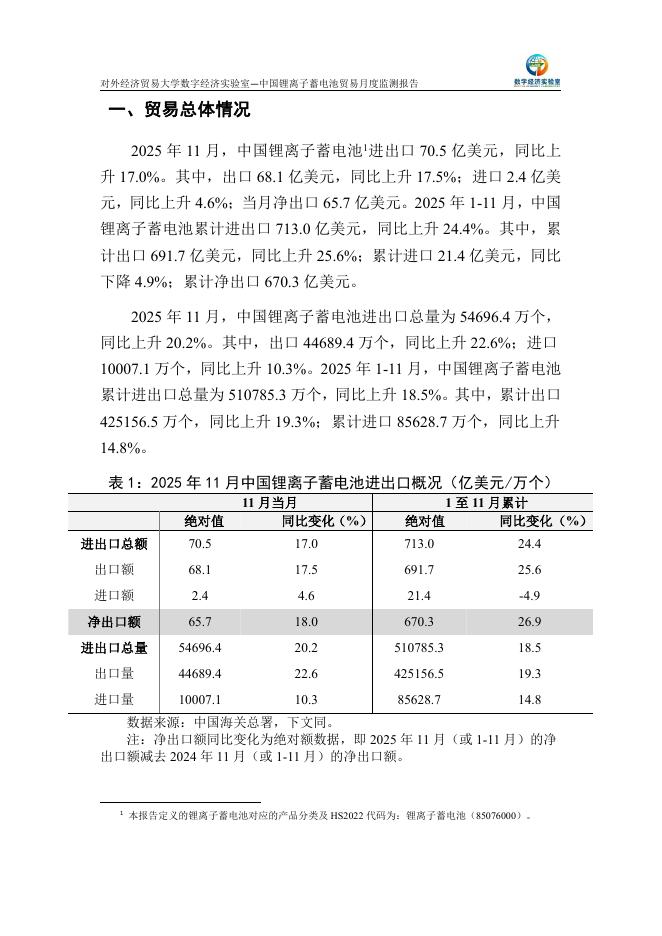 外经济贸易大学:中国锂离子蓄电池贸易月度监测报告(2025年1-11月).pdf