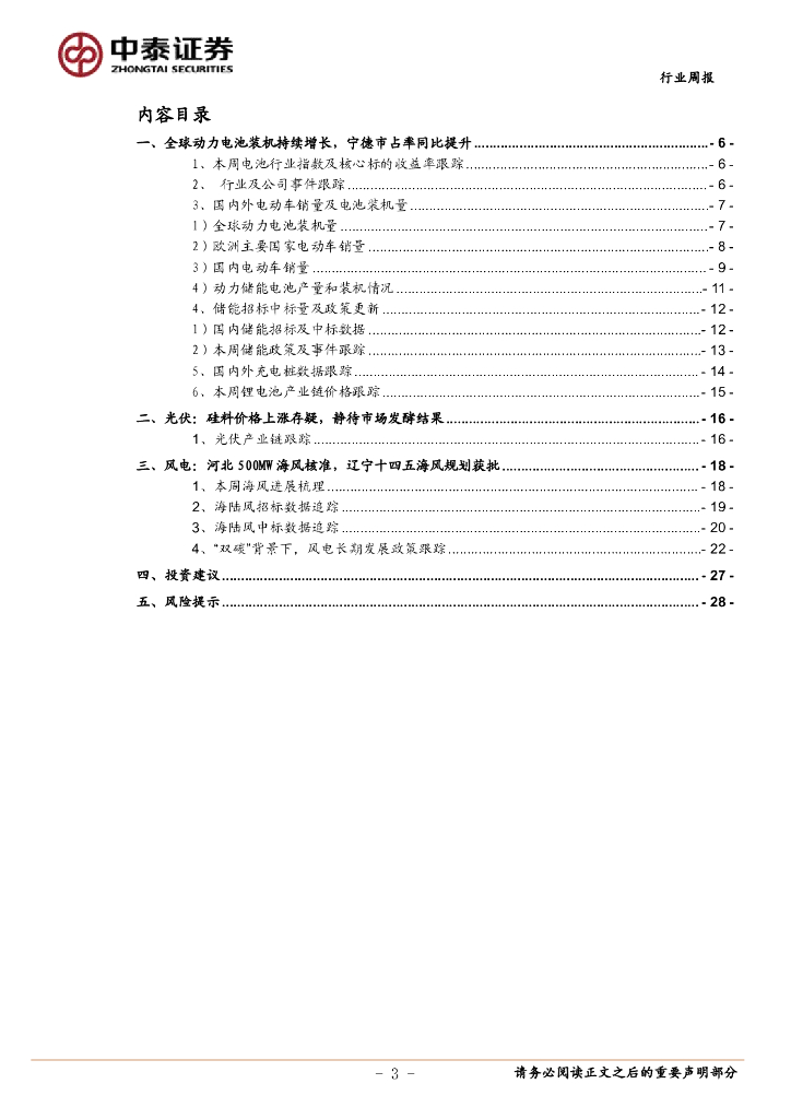 中泰证券:电力设备与新能源行业周报:河北500MW海风核准,辽宁十四五海风规划获批.pdf