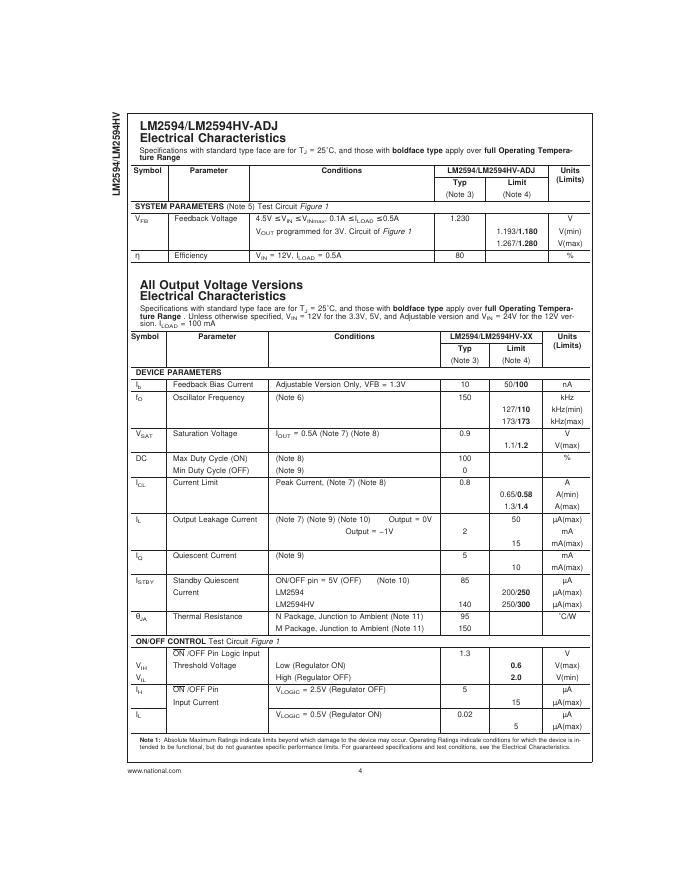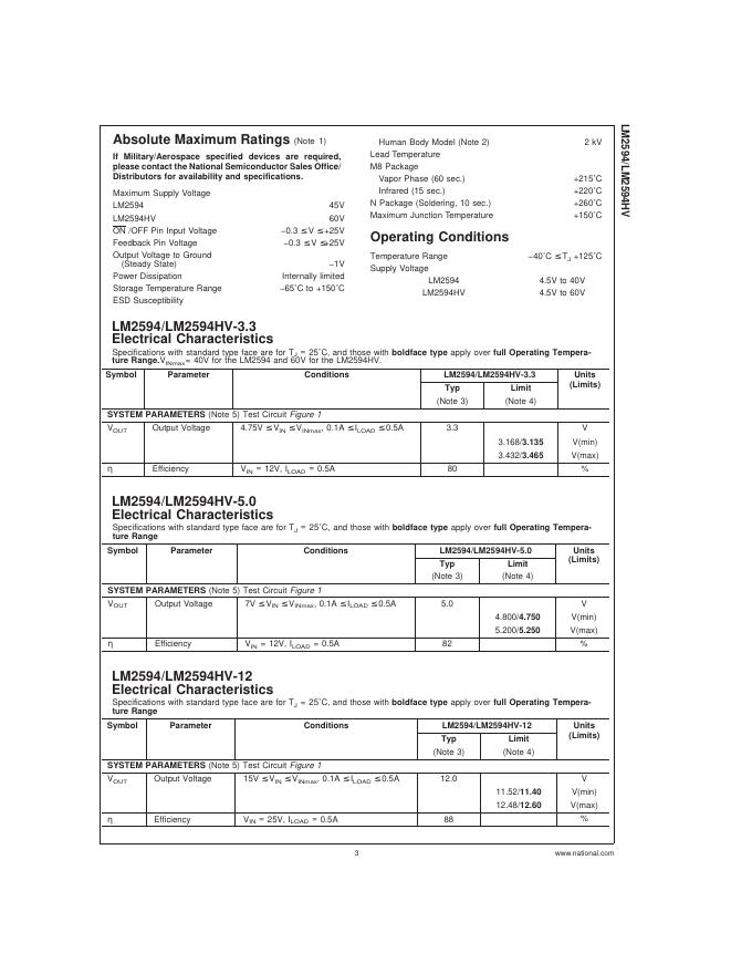 National Semiconductor LM2594/LM2594HV SIMPLE SWITCHER® Power Converter 150 kHz 0.5A Step-Down Voltage Regulator 数据手册.pdf