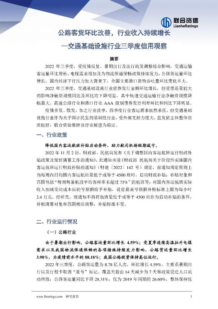 联合资信:交通基础设施行业三季度季度信用观察.pdf