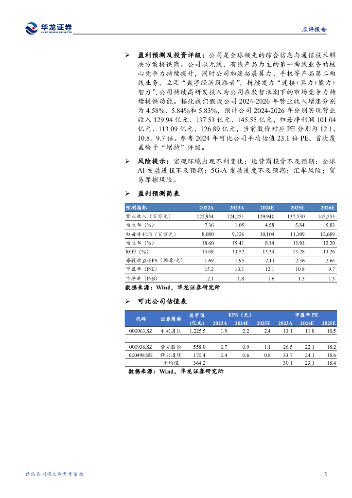 华龙证券:中兴通讯(000063)-2024年半年报点评报告:坚持“连接+算力”主航道,政企业务快速增长.pdf