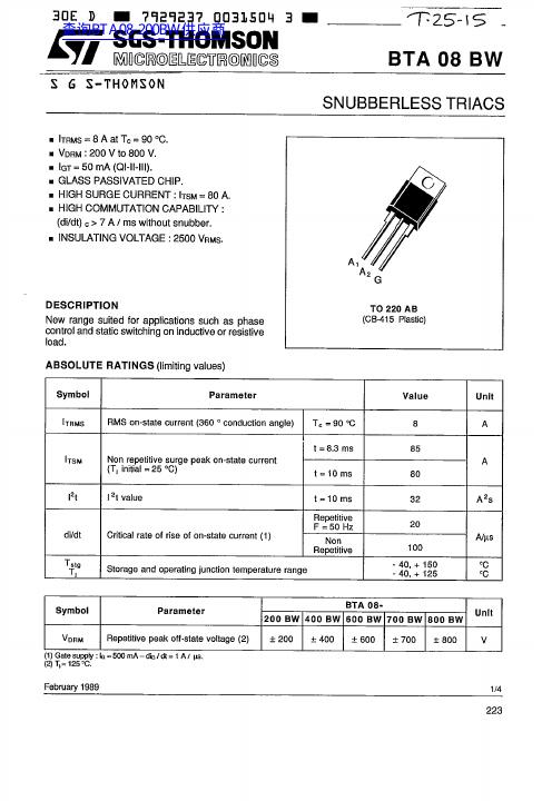 SGS-THOMSON BTA08 BW数据手册.pdf