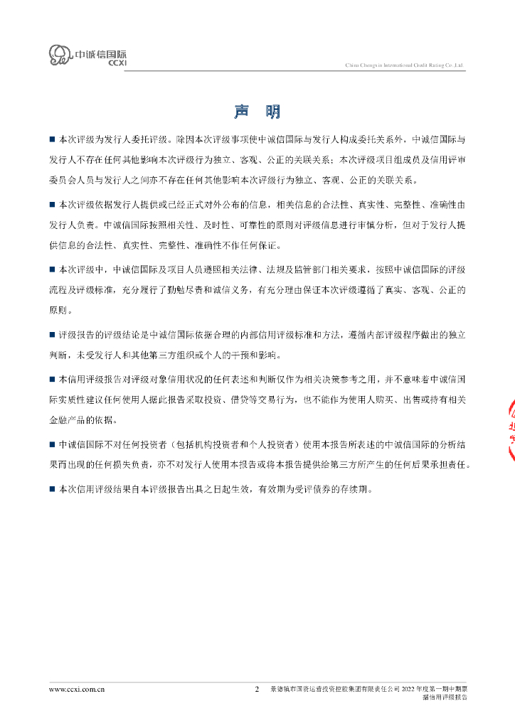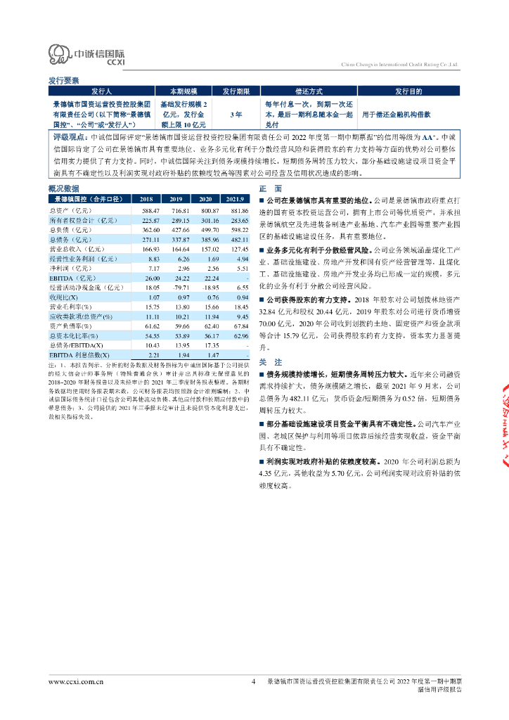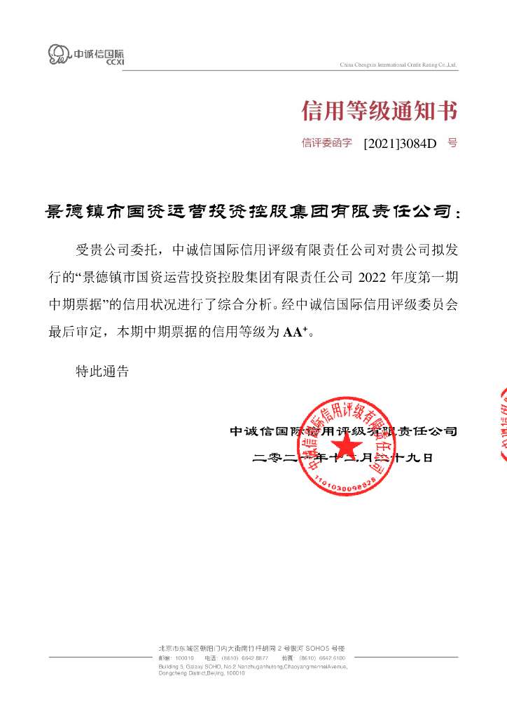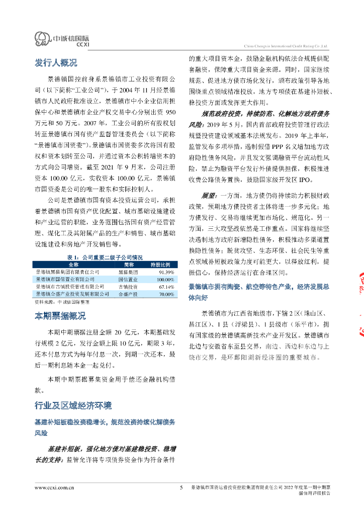 中诚信:景德镇市国资运营投资控股集团有限责任公司2022年度第一期中期票据信用评级报告.pdf