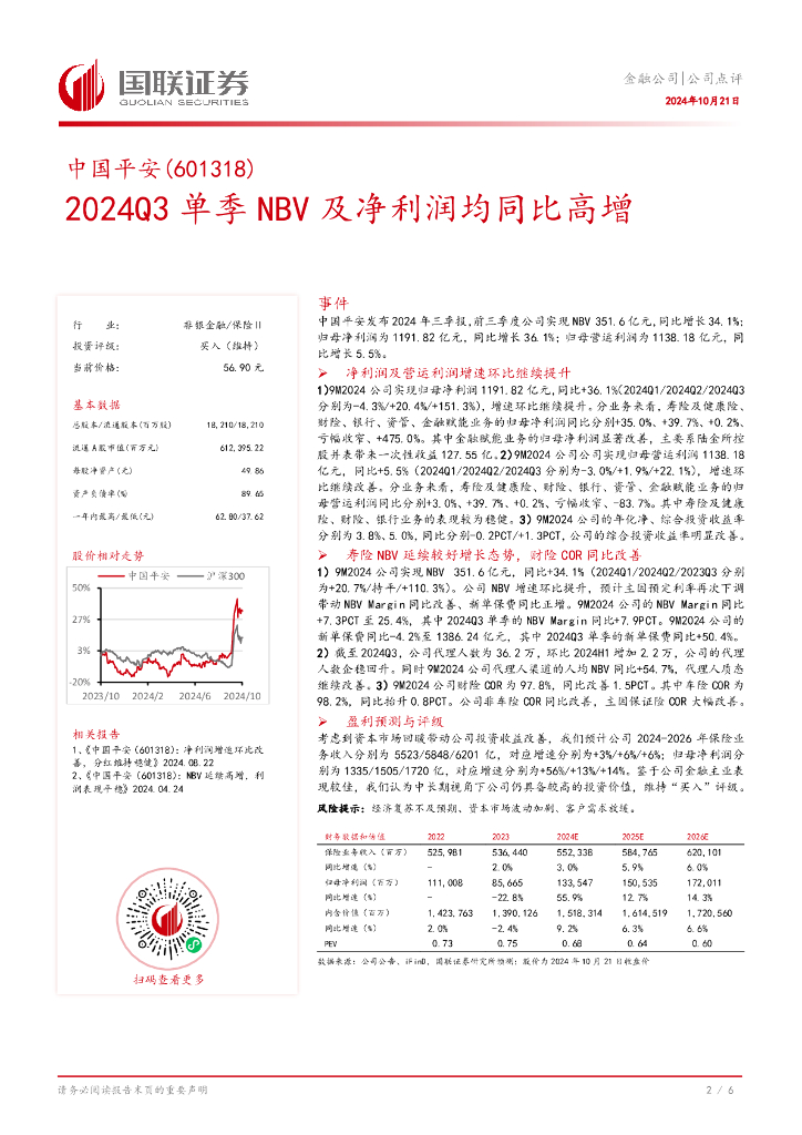 国联证券:中国平安(601318)-2024Q3单季NBV及净利润均同比高增.pdf