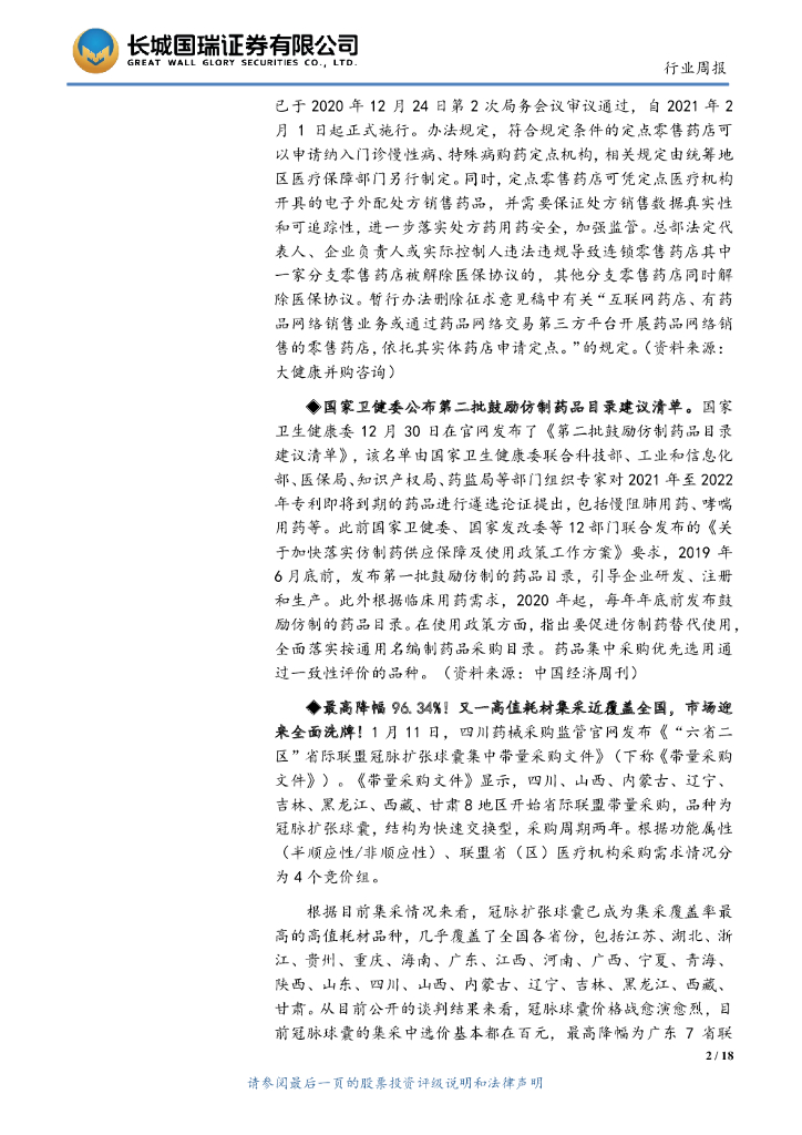 长城国瑞证券:医药生物行业双周报2021年第2期总第26期:零售药店医保管理办法出台 第二批鼓励仿制药品目录建议清单发布.pdf