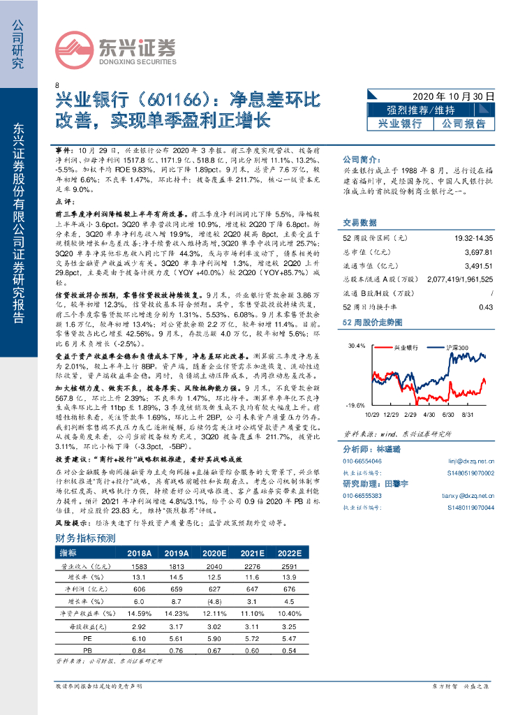 东兴证券:兴业银行(601166)-净息差环比改善,实现单季盈利正增长.pdf
