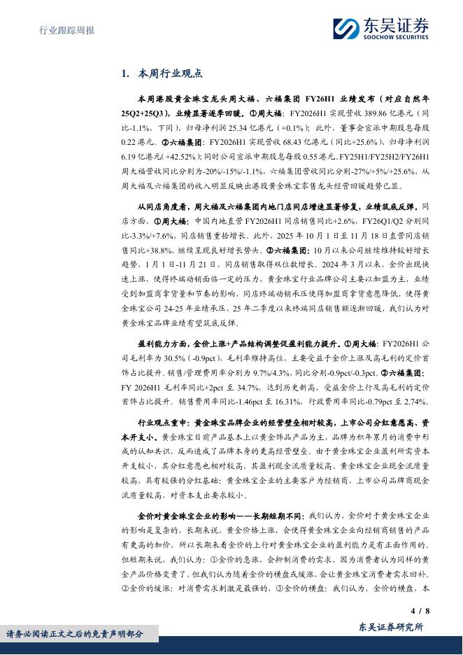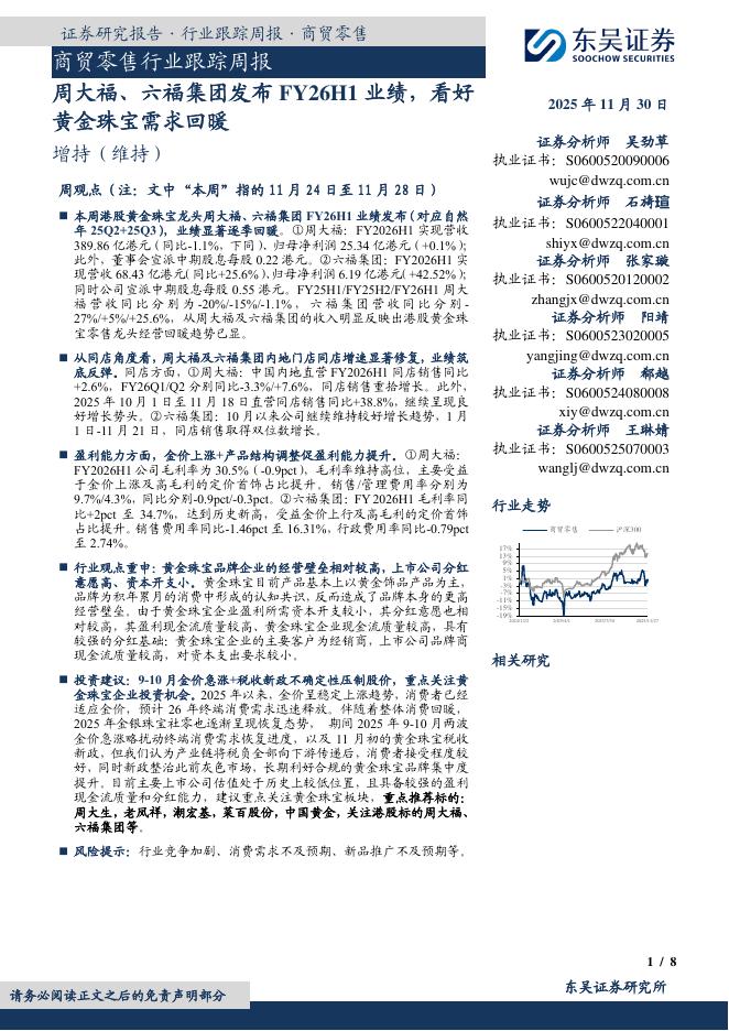 东吴证券:商贸零售行业跟踪周报:周大福、六福集团发布FY26H1业绩,看好黄金珠宝需求回暖.pdf