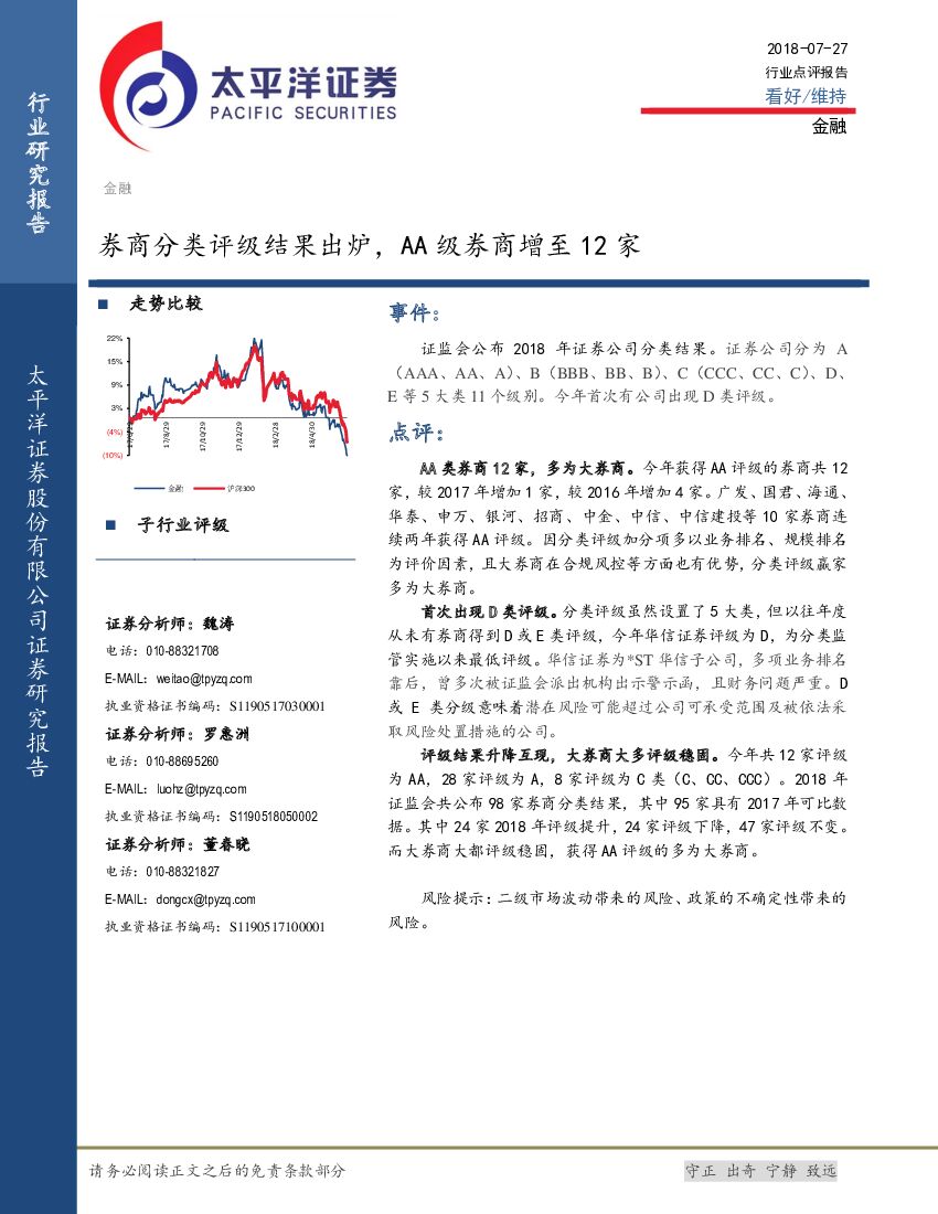 太平洋证券:金融行业点评报告:券商分类评级结果出炉,AA级券商增至12家.pdf