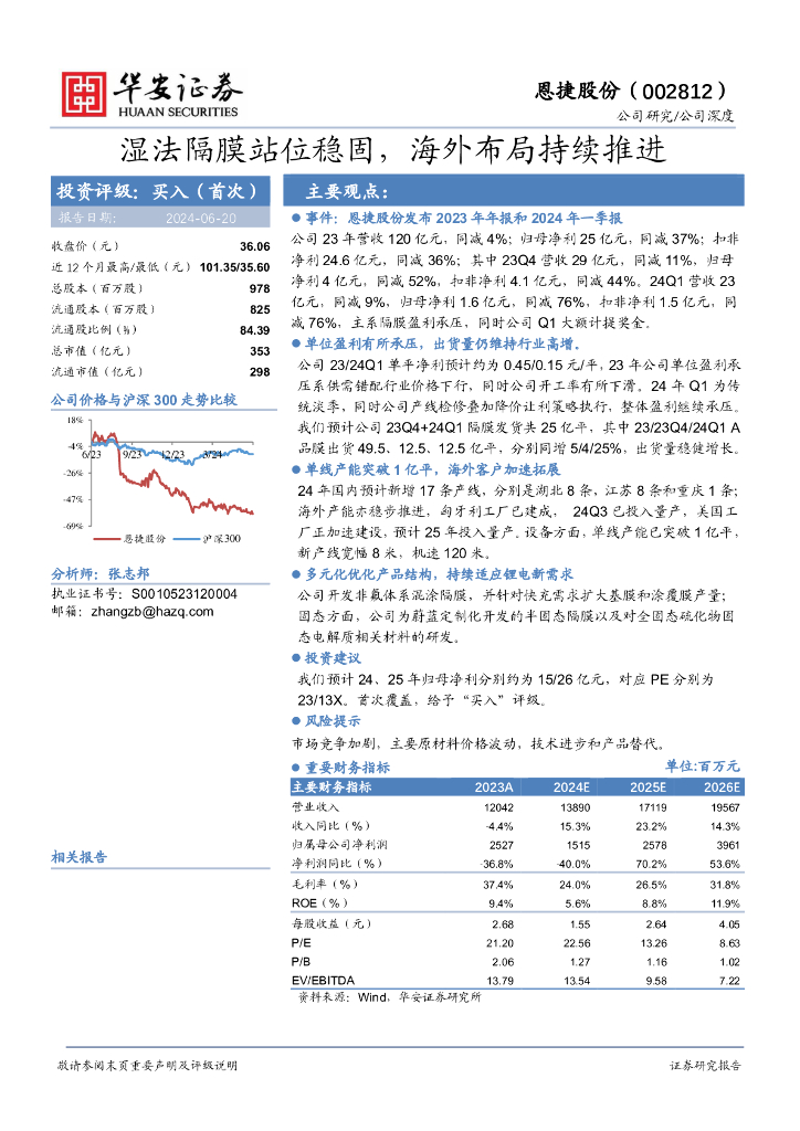 华安证券:恩捷股份(002812)-湿法隔膜站位稳固,海外布局持续推进.pdf