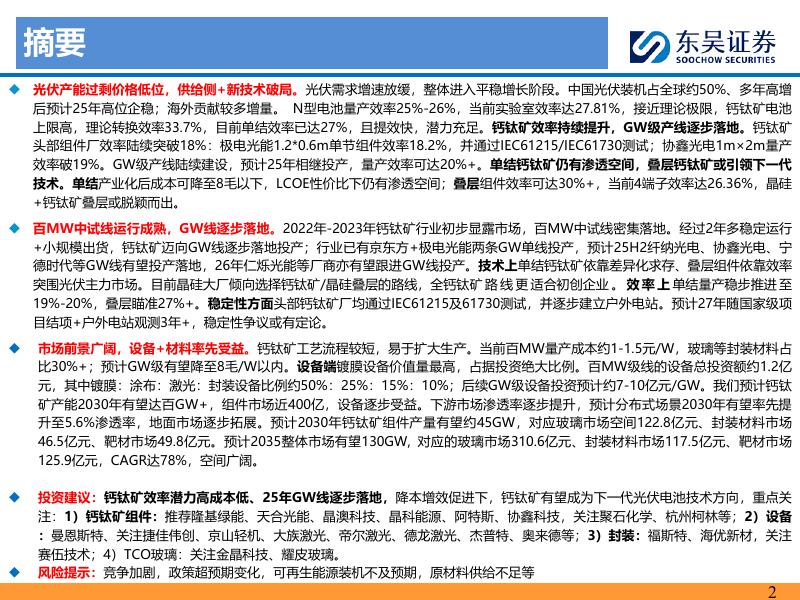 东吴证券:钙钛矿行业深度之二:效率持续提升、GW线逐步落地,钙钛矿产业曙光渐近.pdf