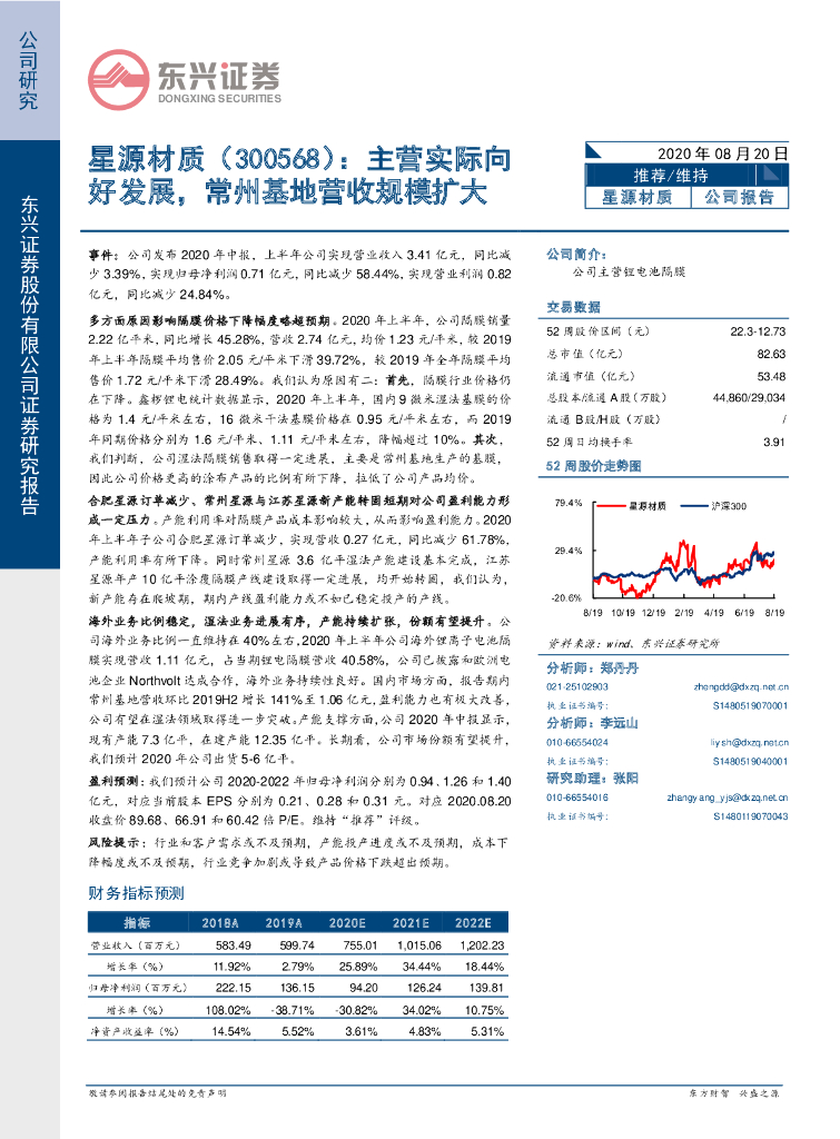 东兴证券:星源材质(300568)-主营实际向好发展,常州基地营收规模扩大.pdf