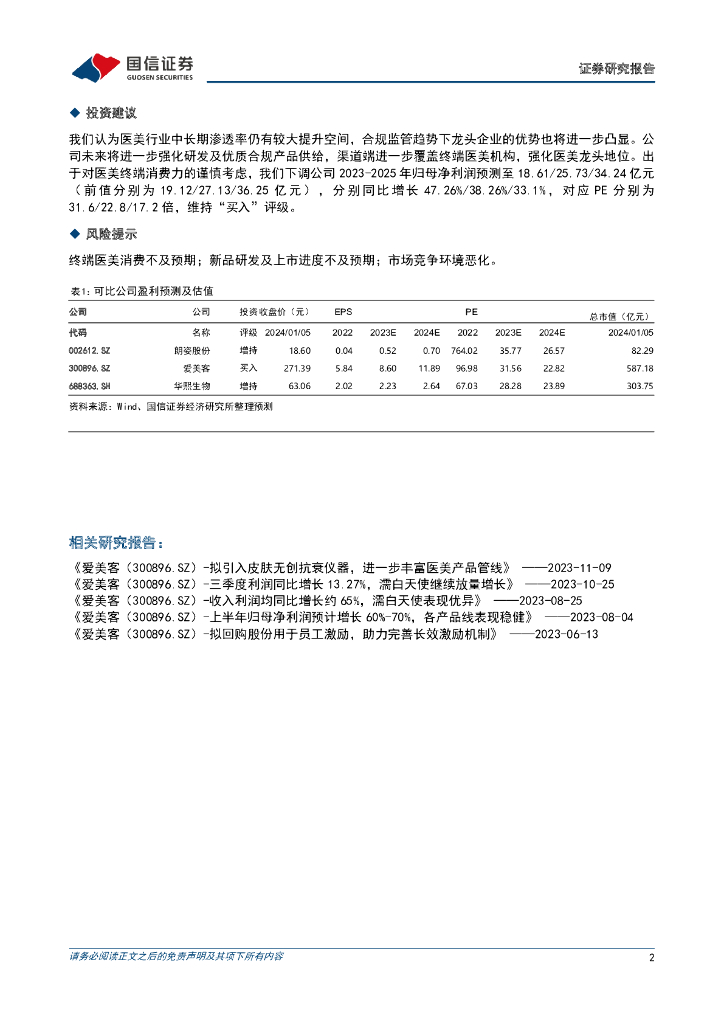 国信证券:爱美客(300896)-2023年归母净利润预计增长43%-50%,重点产品增长良好.pdf