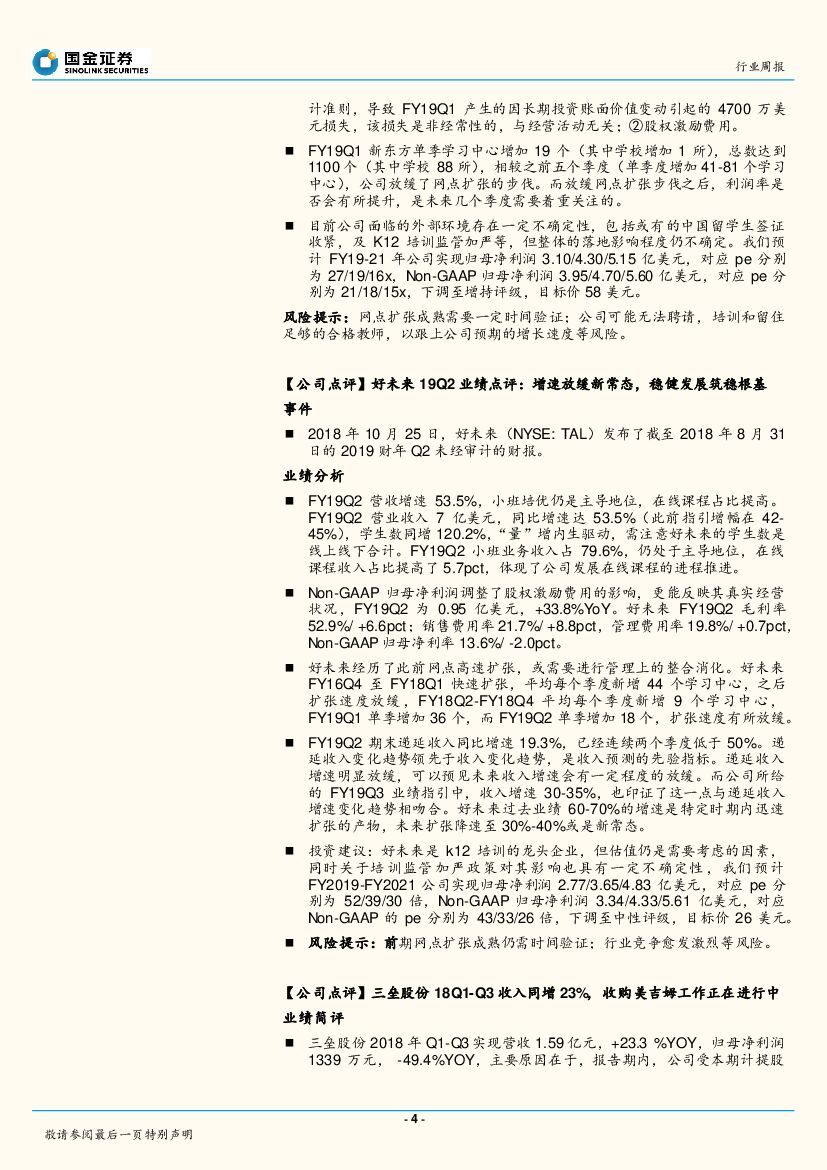 国金证券:2018教育行业周报第40期:全国培训机构整治要求再升级,江苏省对于违规宣传和教学内容等方面击检查.pdf