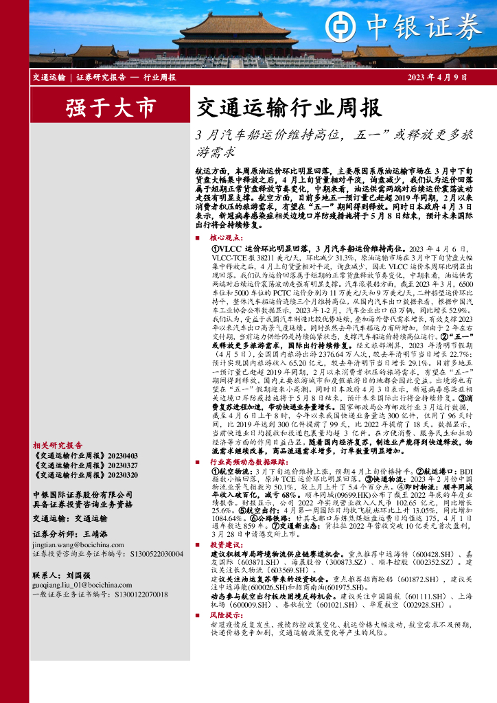 中银证券:交通运输行业周报:3月汽车船运价维持高位,“五一”或释放更多旅游需求.pdf