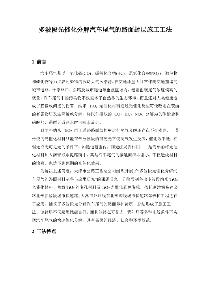 多波段光催化分解汽车尾气路面封层施工工法.pdf