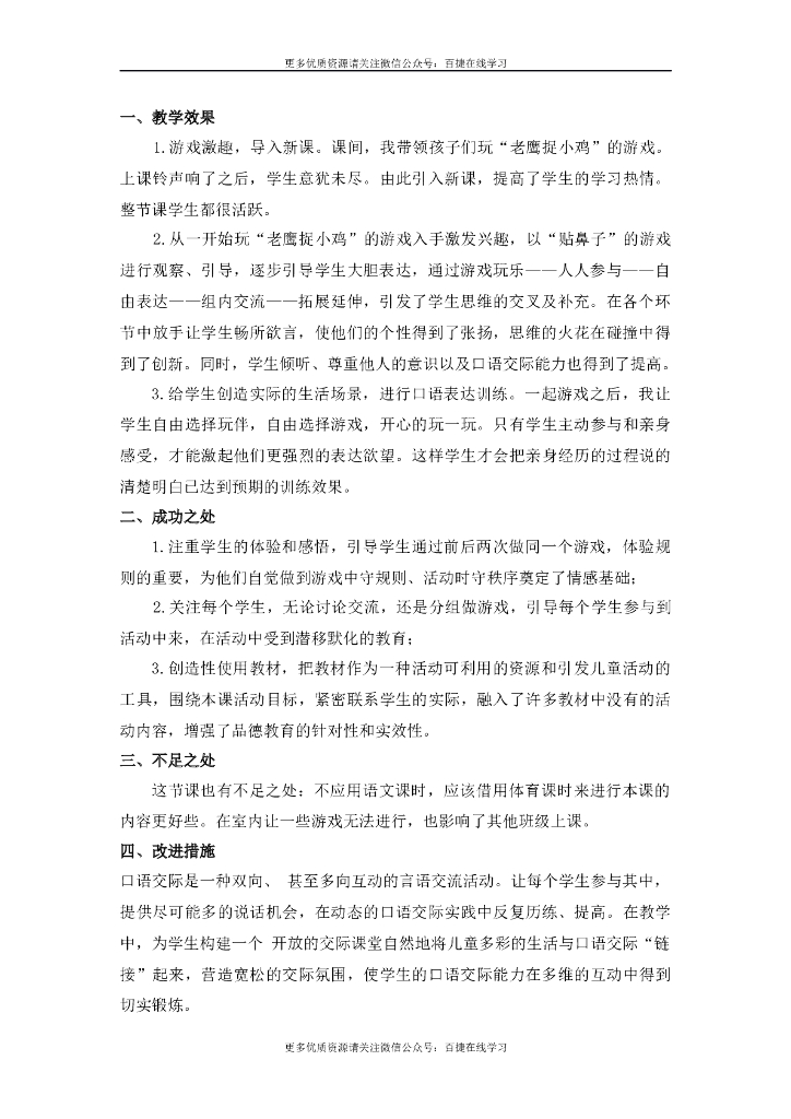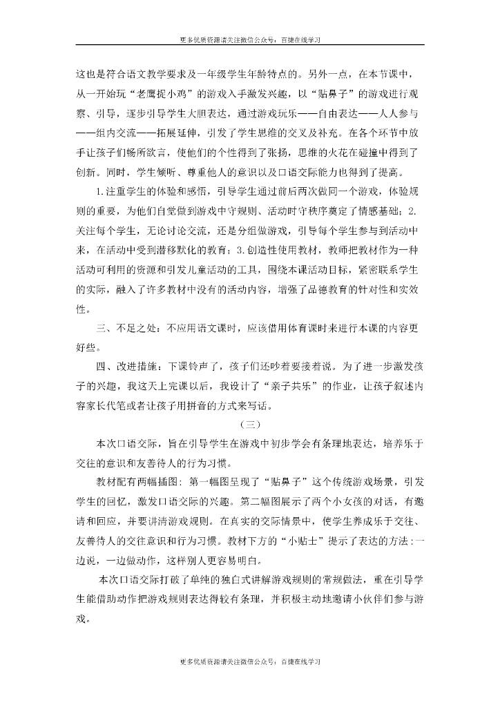 一年级语文下册口语交际:一起做游戏 教学反思.doc