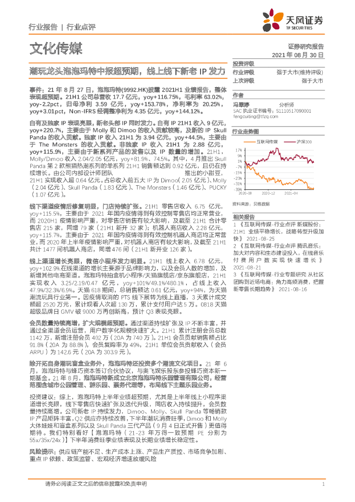 天风证券:文化传媒:潮玩龙头泡泡玛特中报超预期,线上线下新老IP发力.pdf