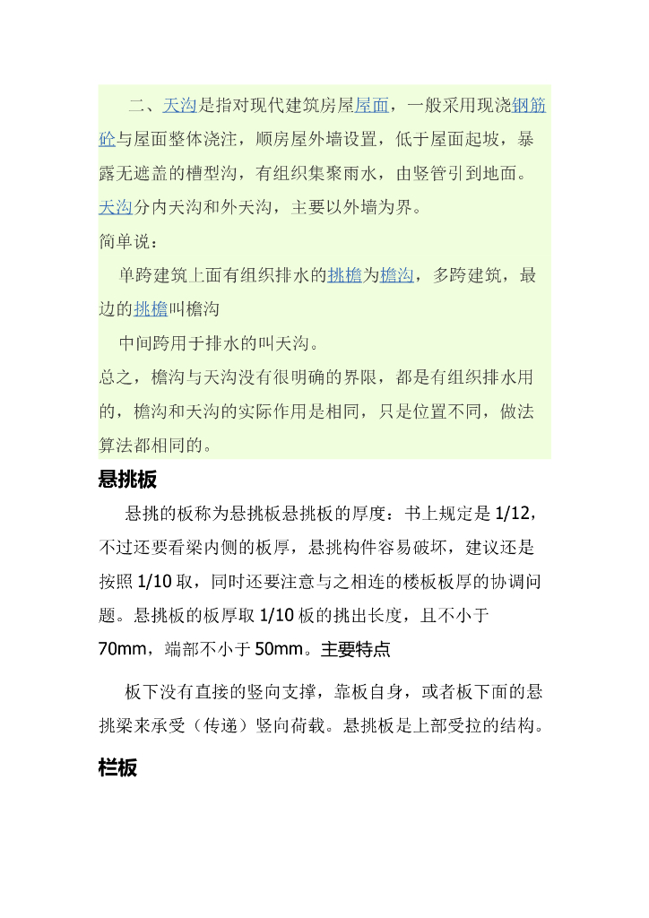 挑檐、天沟、栏板、女儿墙、悬挑板介绍.doc