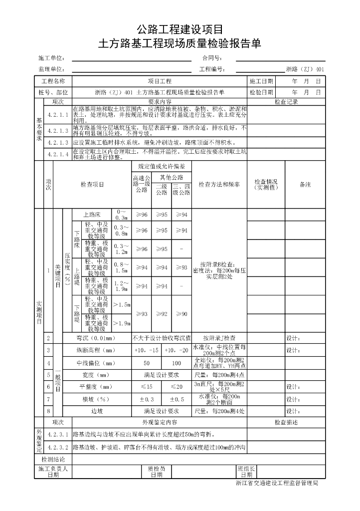 浙江省公路施工单元每层填筑工程用表.pdf