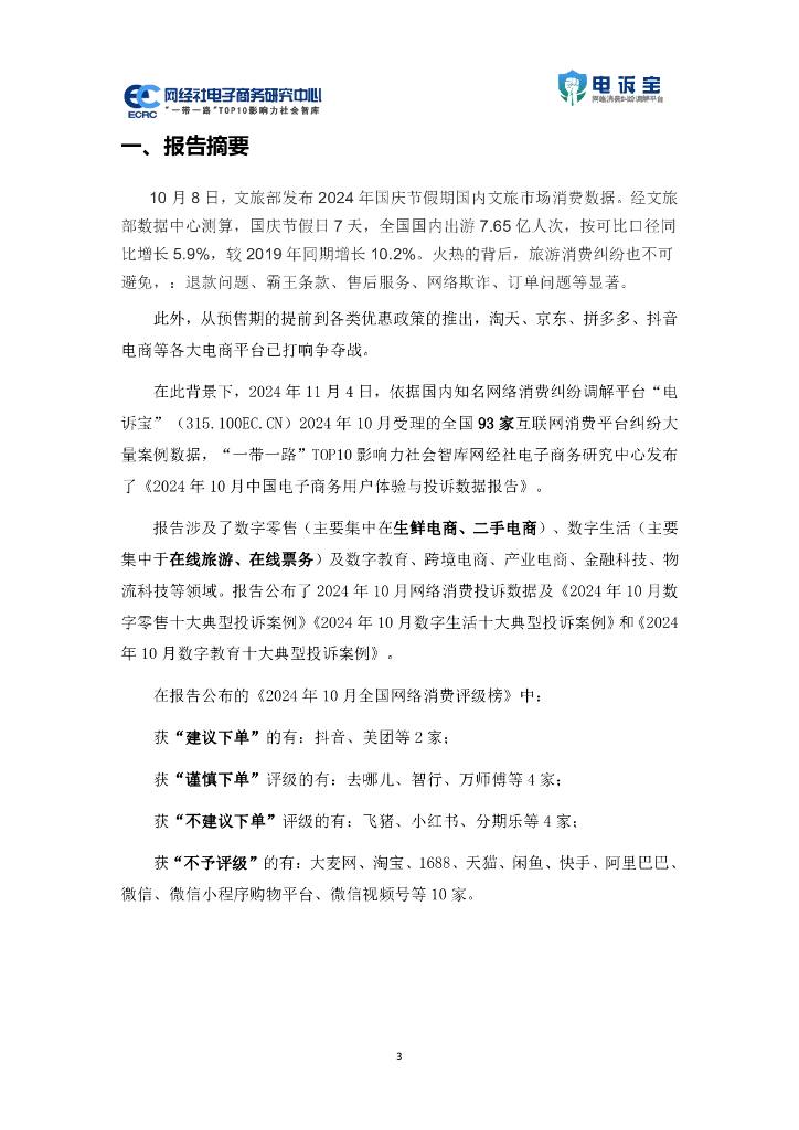 网经社:2024年10月中国电子商务用户体验与投诉数据报告.pdf