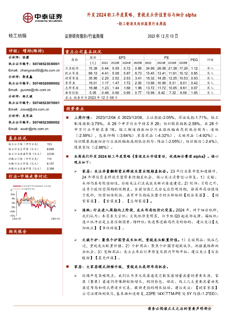中泰证券:轻工制造及纺织服装行业周报:外发2024轻工年度策略,重视龙头价值重估与细分alpha.pdf