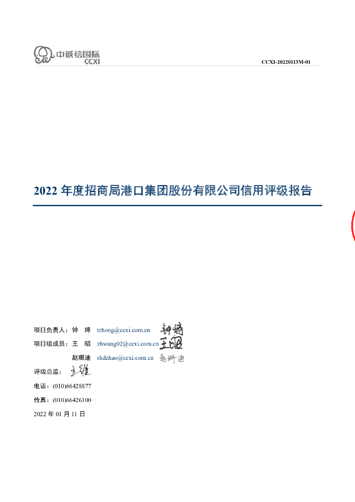 中诚信:招商局港口集团股份有限公司2022年度信用评级报告.pdf
