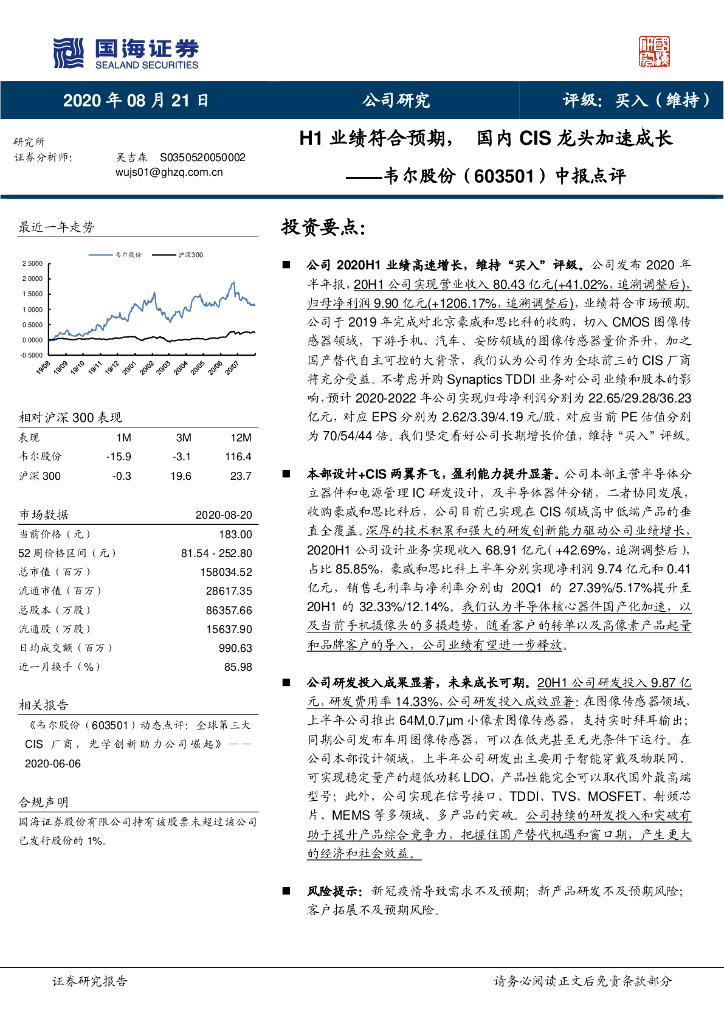 国海证券:韦尔股份(603501)-中报点评:H1业绩符合预期,国内CIS龙头加速成长.pdf