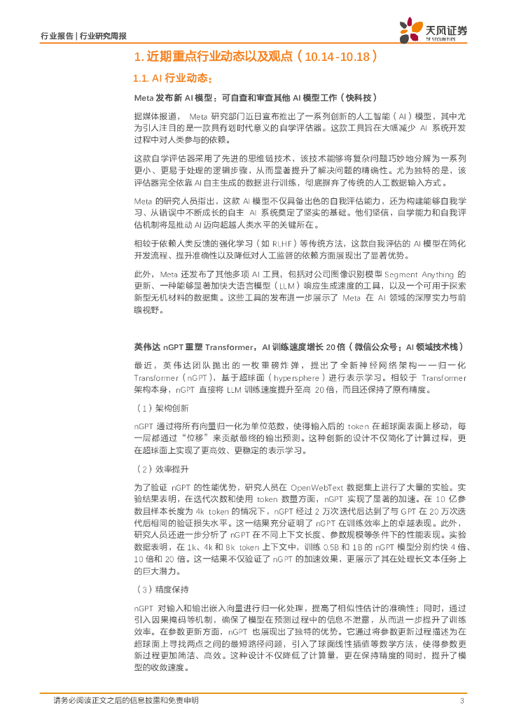 天风证券:通信行业研究周报:NVIDIA新nGPT使训练速度增长20倍,“千帆星座”将迎来常态化发射.pdf