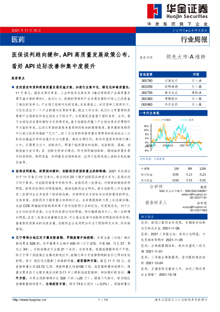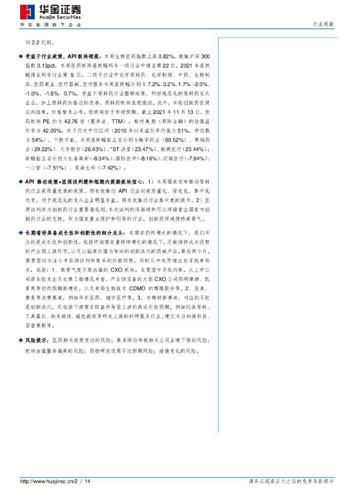 华金证券:医药行业周报:医保谈判趋向缓和,API高质量发展政策公布,看好API边际改善和集中度提升.pdf