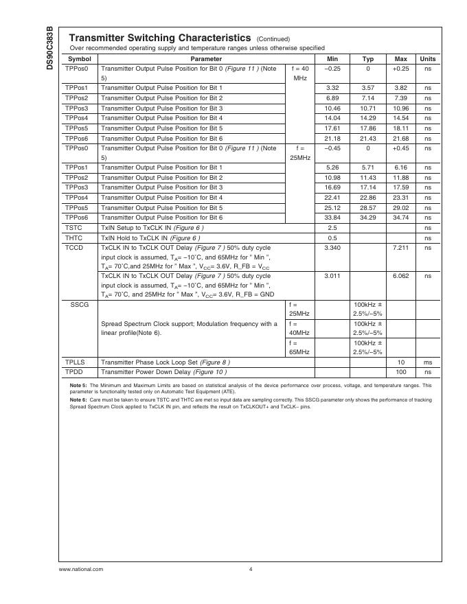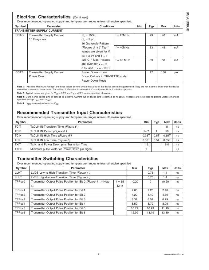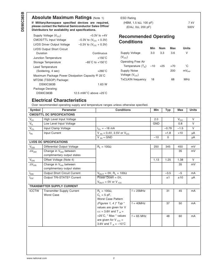 National Semiconductor DS90C383B +3.3V Programmable LVDS Transmitter 24-Bit Flat Panel Display (FPD) Link-65 MHz 数据手册.pdf