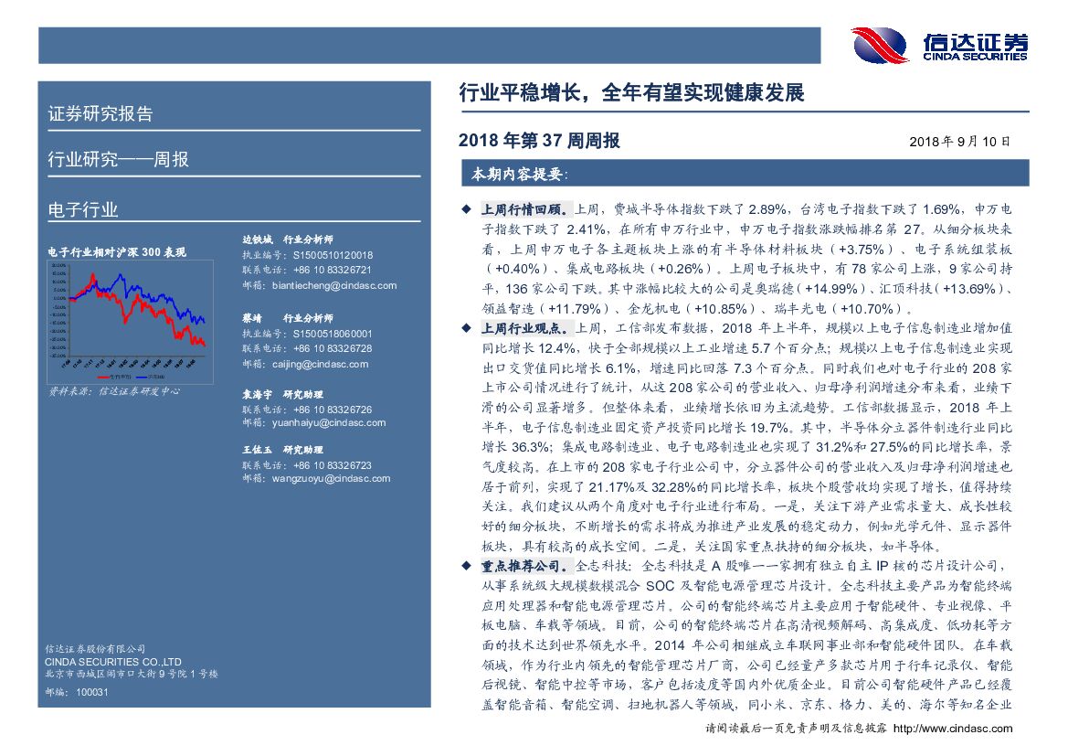 信达证券:电子周报:行业平稳增长,全年有望实现健康发展.pdf