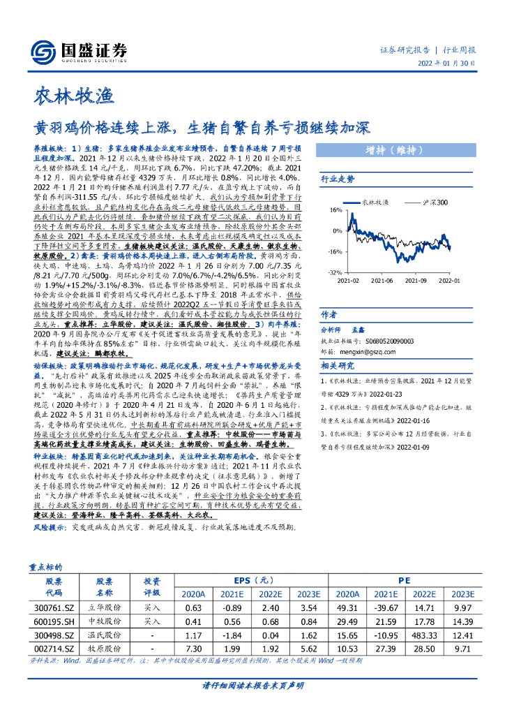 国盛证券:农林牧渔:黄羽鸡价格连续上涨,生猪自繁自养亏损继续加深.pdf