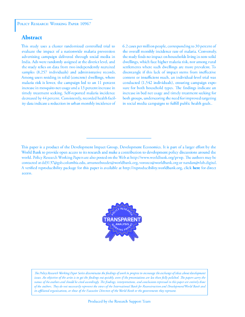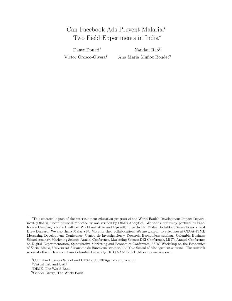 世界银行:脸书广告能预防疟疾吗?印度的两次实地实验(英文版).pdf