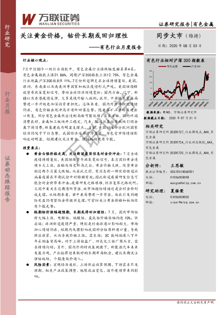 万联证券:有色行业月度报告:关注黄金价格,钴价长期或回归理性.pdf